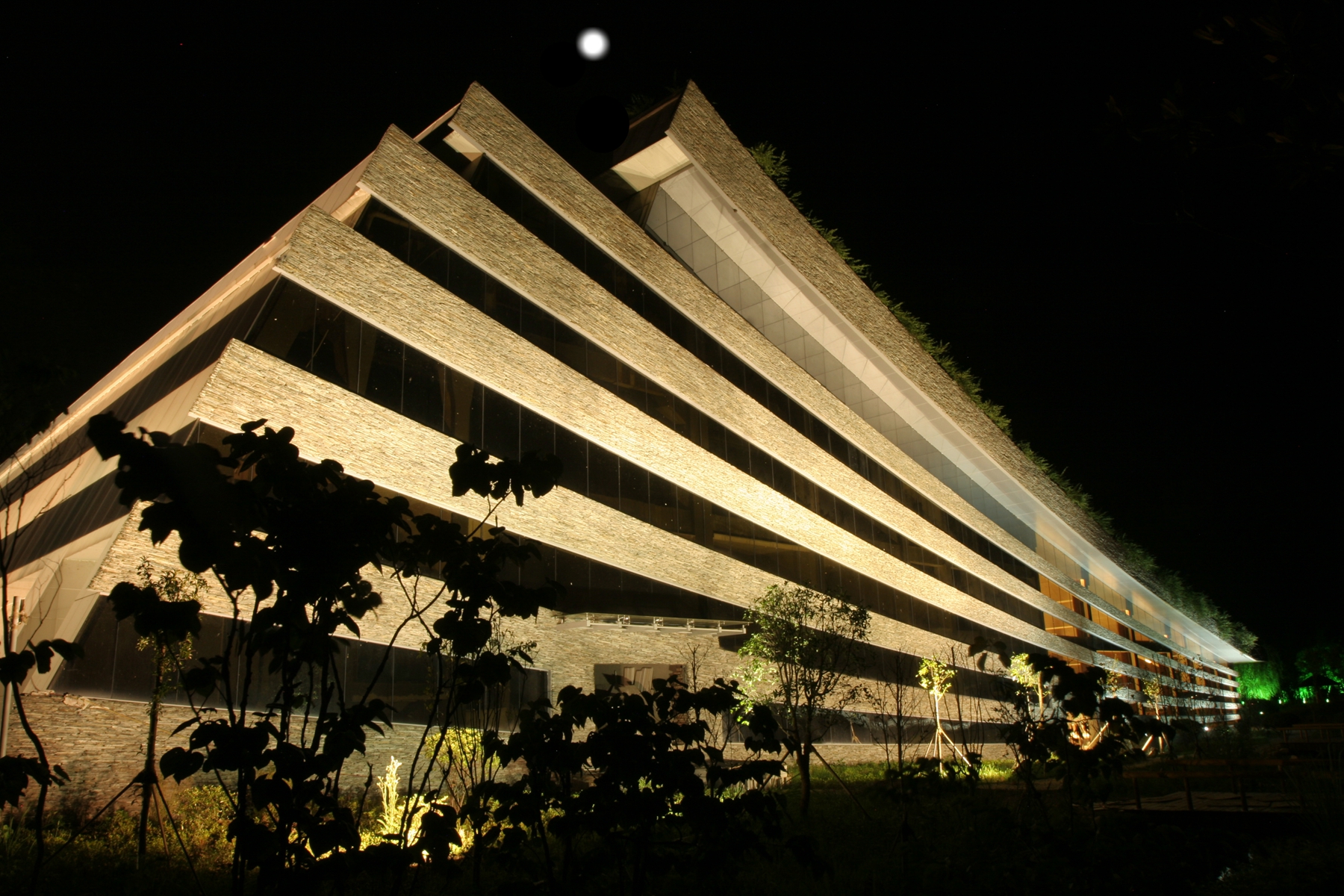 黃龍音樂(lè)廳是張家界文化地標(biāo)性建筑,于2010年建成并投入使用。其單體斜坡面屋頂全部為綠茵花草覆蓋,是目前國(guó)際上屋頂綠化面積最大的建筑,也是世界公認(rèn)的綠色環(huán)保音樂(lè)廳。