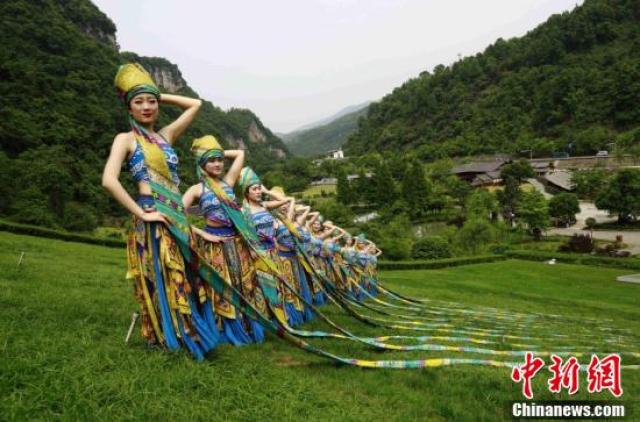 5月3日,湖南張家界武陵源黃龍洞風(fēng)景區(qū)的青年員工身著盛裝,上演了一場(chǎng)精彩的苗族頭帕秀,喜慶五四青年節(jié)的到來(lái)。
